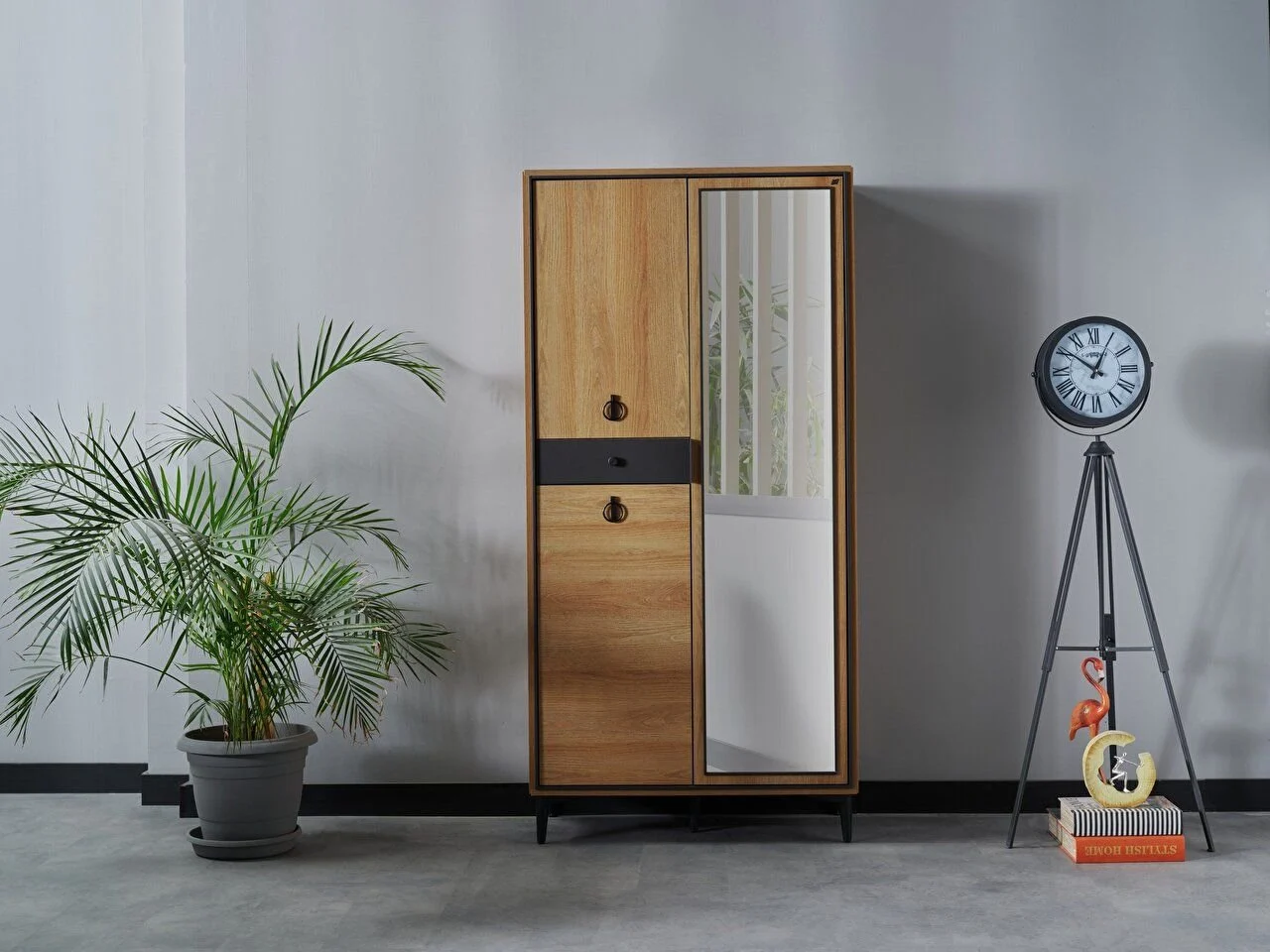 L’armoire porte-manteaux Vista allie fonctionnalité et élégance. Des compartiments de placard et des zones de suspension utiles vous permettent de ranger vos vêtements de manière ordonnée, tandis que sa conception modulaire vous permet de réaliser l’arrangement que vous souhaitez. De plus, il offre un aspect spacieux grâce à ses détails en miroir et ajoute de la profondeur à votre maison.