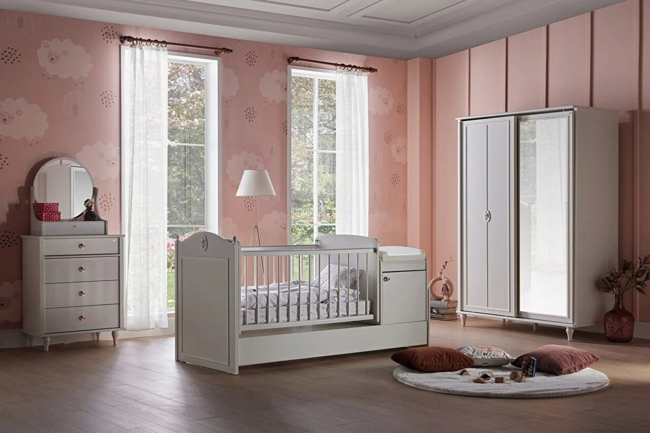 L’ensemble de chambre pour bébé Emily attire l’attention par son design qui allie élégance et élégance. Cet ensemble est conçu dans la continuité de la chambre d’adolescent Emily et a pour objectif d’ajouter une atmosphère pure et élégante aux chambres de bébé. Voici les points forts de l’ensemble chambre bébé Emily :