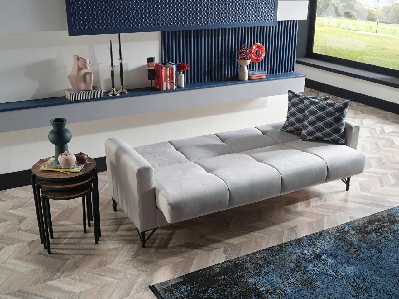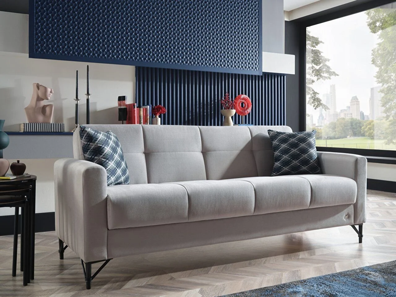 Ensemble de canapés Monreo L’ensemble de canapés Monreo ajoutera de l’esthétique et de l’élégance à la décoration de votre maison, alliant simplicité et élégance, remplissant votre espace de vie d’une atmosphère moderne. L’harmonie noble du gris et du bleu marine vise à s’intégrer parfaitement à votre décoration. Cet ensemble plaît à tous les goûts en s’adaptant à la plupart des styles de décoration. Au centre de l’ensemble de canapés Monreo se trouve le canapé trois places accrocheur. Représentant la simplicité et la sophistication avec sa couleur grise, ce canapé offre à la fois confort et esthétique avec ses lignes modernes et sa structure ergonomique. Il est idéal pour des conversations agréables et des moments de détente de longues soirées. Avec sa particularité d’être utilisé comme canapé-lit, le confort de vos invités n’a jamais été aussi bon. Le canapé deux places offre une esthétique équilibrée dans l’espace avec son design harmonieux et sa couleur bleu marine. Orné de détails élégants et de lignes stylisées, ce canapé offre à la fois une expérience d’assise confortable et élégante. Il ajoute non seulement du confort mais aussi de l’élégance à votre pièce. Le fauteuil à oreilles, qui est le complément de l’ensemble, allie élégance et simplicité et met l’accent sur l’esthétique. Il ajoute un air sophistiqué à votre pièce avec sa combinaison parfaite de gris et de bleu marine. Il impressionne par son assise confortable et son apparence élégante. Apportant modernité et élégance à chaque coin de votre maison, l’ensemble de canapés Monreo vous offre non seulement un ensemble de sièges mais aussi un style de vie. Nous vous offrons une expérience d’achat parfaite avec nos avantages d’installation gratuite et de livraison gratuite. N’oubliez pas de créer votre commande maintenant pour vivre cette expérience unique !