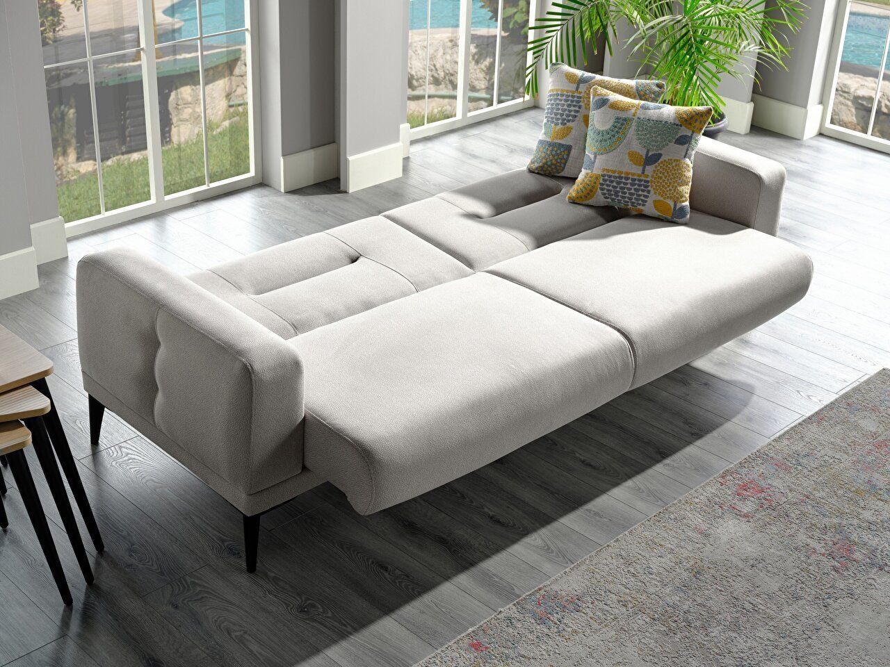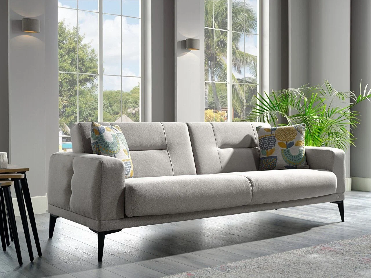 L’ensemble de canapés Sandra propose une large gamme de produits, notamment des alternatives triples, doubles et à dossier ailé. Les unités triples et doubles ont la particularité d’être un lit avec mécanisme saphir. L’application de coutures sur le dos et les côtés extérieurs des accoudoirs, qui est particulière à sa conception, donne au produit une riche visualisation. Les pieds hauts en plastique noir facilitent le nettoyage ainsi qu’un aspect esthétique. Il est fabriqué à l’aide d’un tissu tricoté doux au toucher, aspect cuir. La structure en tissu offre des caractéristiques faciles à nettoyer et résistantes à l’usure. Il est fabriqué à partir de matériaux respectueux de la santé humaine. Les matériaux non cancérigènes conformes aux normes E1 sont privilégiés dans le produit. Un confort et une durabilité supplémentaires sont assurés par l’utilisation d’une éponge douce 32 dns dans les sièges de l’unité triple. Dans le dossier ailé Sandra, une structure saine, flexible, confortable et durable est créée en utilisant une éponge moulée adaptée à une large gamme d’utilisations. Avec ces caractéristiques, l’ensemble de canapés SANDRA offre une option pour créer des espaces parfaits en combinant à la fois élégance et fonctionnalité.