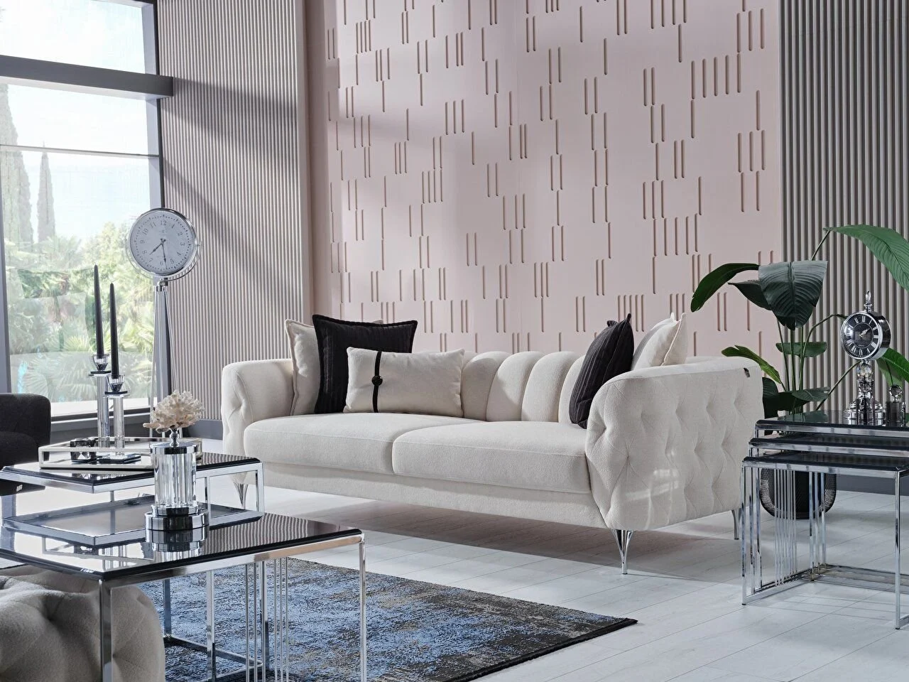 Design élégant, détails luxueux Viola Sofa Set vise à ajouter une touche raffinée à la décoration en combinant des détails de design élégants avec le luxe.
