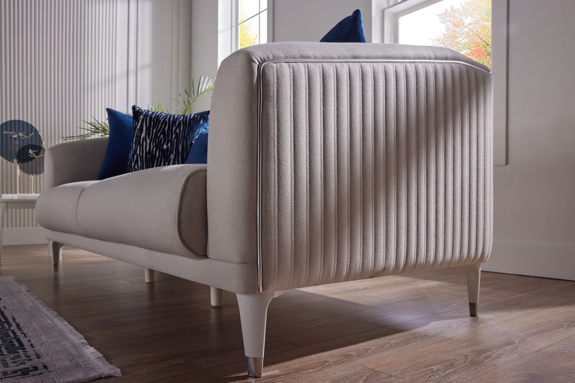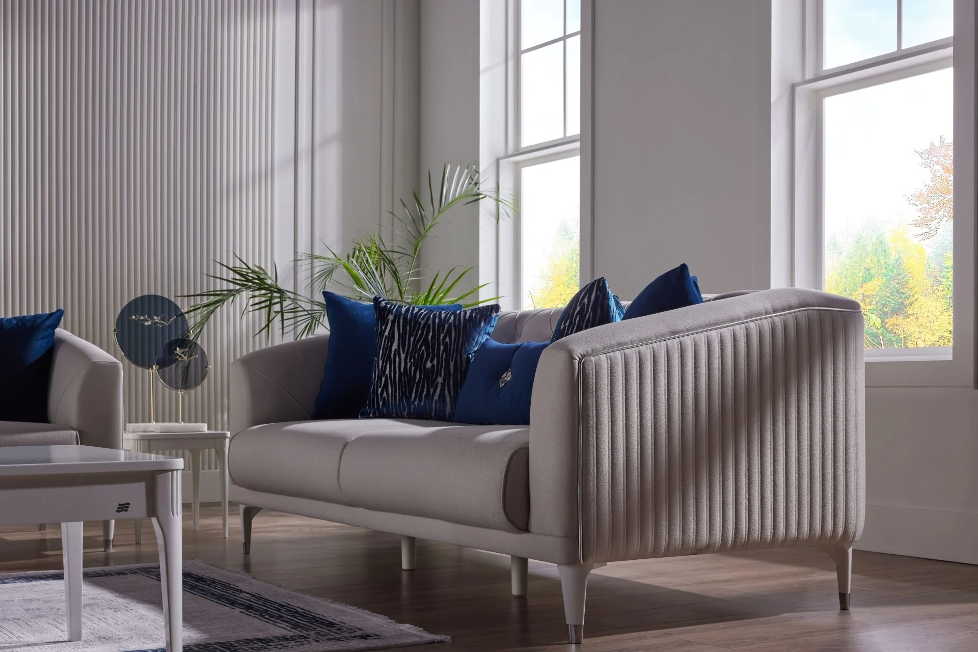 Le cœur de l’arène bat avec son magnifique siège triple. Ce fauteuil, dont vous serez captivé par le design avant-gardiste, offre la fascinante danse du crème et du bleu marine dans sa forme la plus élégante. Les applications de matelassage soulignent les subtilités esthétiques du design. Ce sera la star de votre maison avec des séances confortables qui durent toute la journée et l’expérience d’hébergement élégante que vous offrez à vos invités. La causeuse à côté du canapé trois places est le symbole de l’harmonie et de l’élégance. Le fauteuil, qui est la pierre angulaire de l’ensemble de canapés Arena, reflétera au mieux votre style.