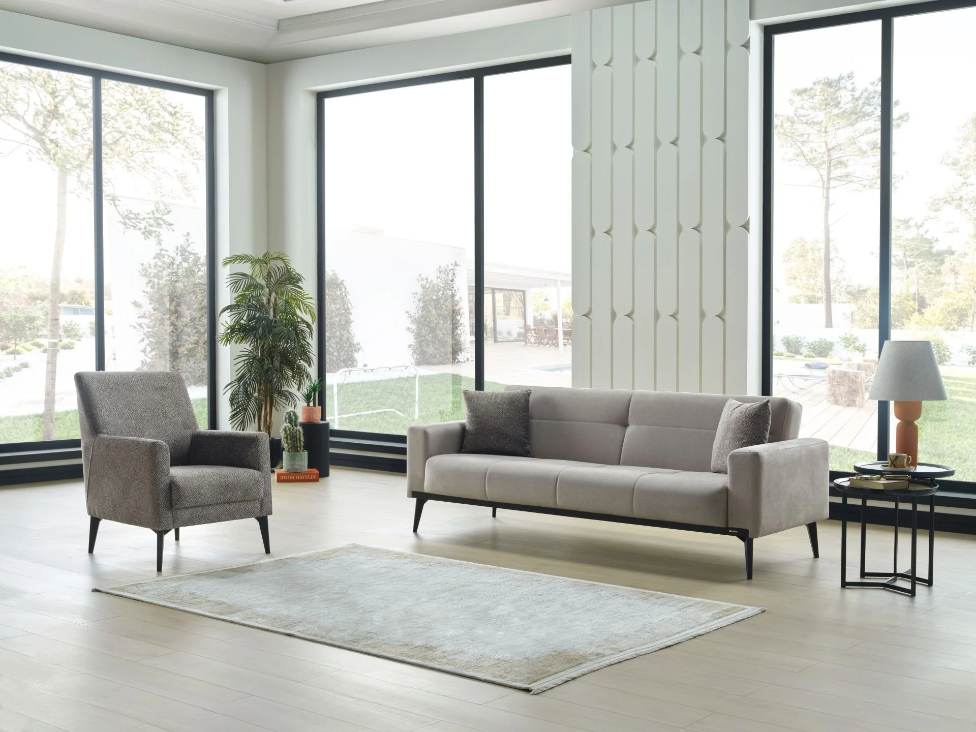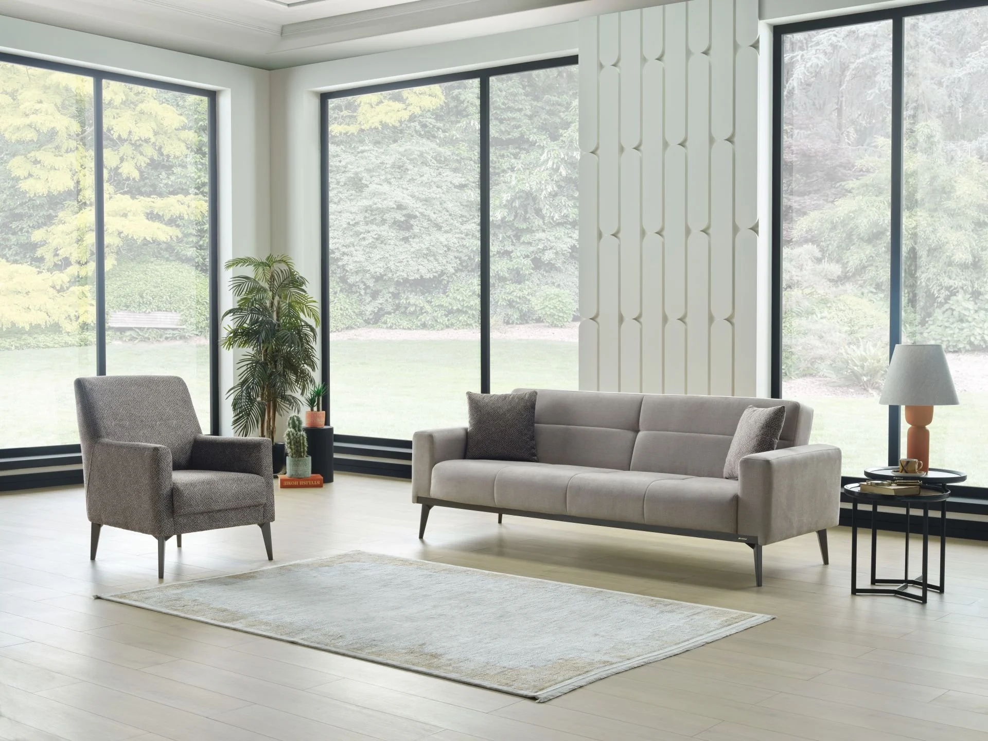 L’ensemble de canapés Cansas ajoute une touche élégante à votre maison avec son design simple et moderne. Alliant confort et élégance à chaque pièce, cet ensemble offre un aspect esthétique avec sa couleur grise et sa texture en tricot. Cet ensemble à la fois confortable et utile est un choix idéal pour ceux qui souhaitent renouveler leur espace de vie. La caractéristique des canapés trois places et deux places se transformant en lits augmente la fonctionnalité et offre une facilité d’utilisation grâce à son tissu doux et lavable. Conçu pour être compatible avec l’ensemble de salle à manger Cansas, cet ensemble de canapés est une option parfaite pour ceux qui recherchent un espace de vie moderne et pratique. Fabriqué à partir de matériaux ne contenant pas de substances cancérigènes et respectueux de la santé humaine, Cansas offre une utilisation durable et sûre. De plus, il s’adapte aux différentes préférences de décoration grâce à ses alternatives de couleurs de pieds.