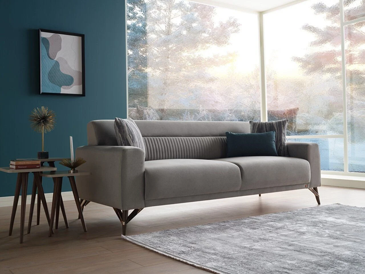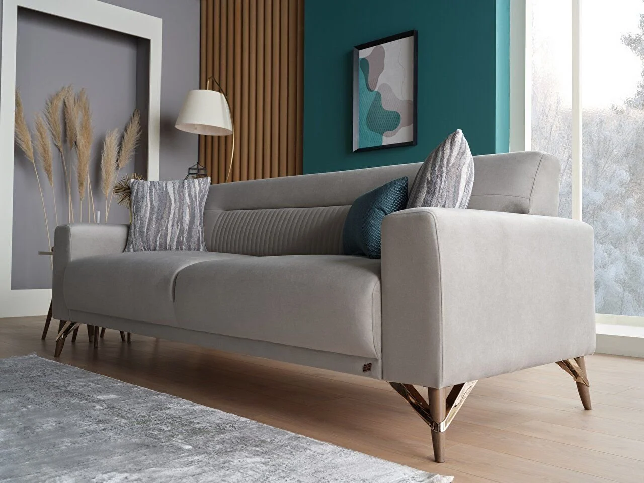 Le canapé Marven offre une grande flexibilité d’utilisation en combinant des alternatives triples, doubles et à dossier ailé. Chaque pièce peut être sélectionnée en fonction de la taille et des besoins de votre pièce. Grâce à son mécanisme qui bascule depuis l’arrière, le canapé Marven peut instantanément se transformer en lit. Cette fonctionnalité crée un espace de couchage supplémentaire tout en accueillant vos invités ou en vous reposant la nuit. Conçu dans un style traditionnel, le canapé offre une riche visualisation sur le dos avec son application de matelassage spéciale. Ce détail augmente la valeur esthétique de l’ensemble et ajoute de l’élégance à votre pièce. Le tissu tricoté doux et flexible offre une facilité d’utilisation grâce à sa fonction essuyable. Cette fonctionnalité facilite le nettoyage et l’entretien de votre canapé et assure une utilisation durable. Le canapé Marven complète son design contemporain avec des pieds en plastique noyer-bronze. Un confort et une durabilité supplémentaires sont assurés par l’utilisation d’une éponge douce 32 dns dans l’assise triple et d’une éponge douce 28 dns dans le dossier ailé. Ces caractéristiques offrent une expérience durable et confortable pour une utilisation à long terme.