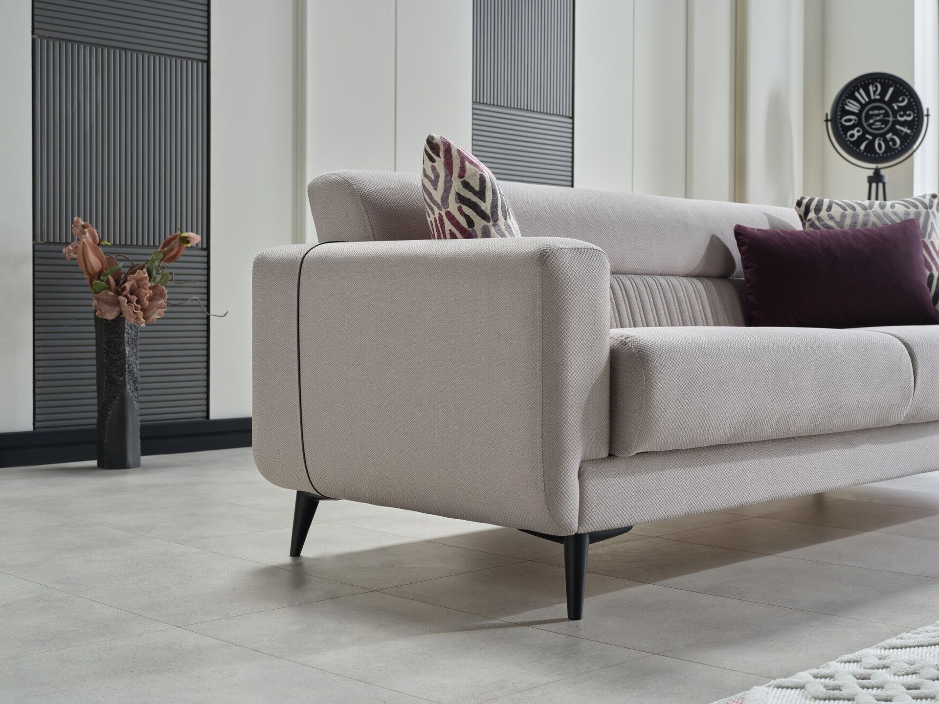 L’ensemble de canapés Molde S allie les tendances du design moderne au confort et à la fonctionnalité, apportant une touche d’innovation à vos espaces de vie. Orné de détails élégants et ergonomiques, cet ensemble se distingue par son esthétique et sa praticité. Design intemporel : son élégance intemporelle, revisitée avec des détails modernes, confère une atmosphère sophistiquée à vos espaces de vie. Il s’adapte à tous les besoins grâce à ses options triple, double et fauteuil. Les unités triple et double se transforment en un lit confortable grâce à leur dossier amovible. La fonction rangement offre une solution pratique en offrant un espace de rangement supplémentaire. Le matelassage du dossier des unités triple et double ajoute une touche esthétique et une richesse visuelle. La mousse souple 28 dns utilisée dans l’ensemble offre un confort optimal, même en position assise prolongée. Le tissu tricoté doux et lavable garantit une utilisation facile. Les pieds en plastique noir, avec leur structure surélevée, sont faciles à nettoyer et offrent un look moderne. La capacité des unités triple et double à servir à la fois de lit et de rangement offre fonctionnalité et facilité d’utilisation. Le tissu lavable garantit la longévité et la praticité du produit.