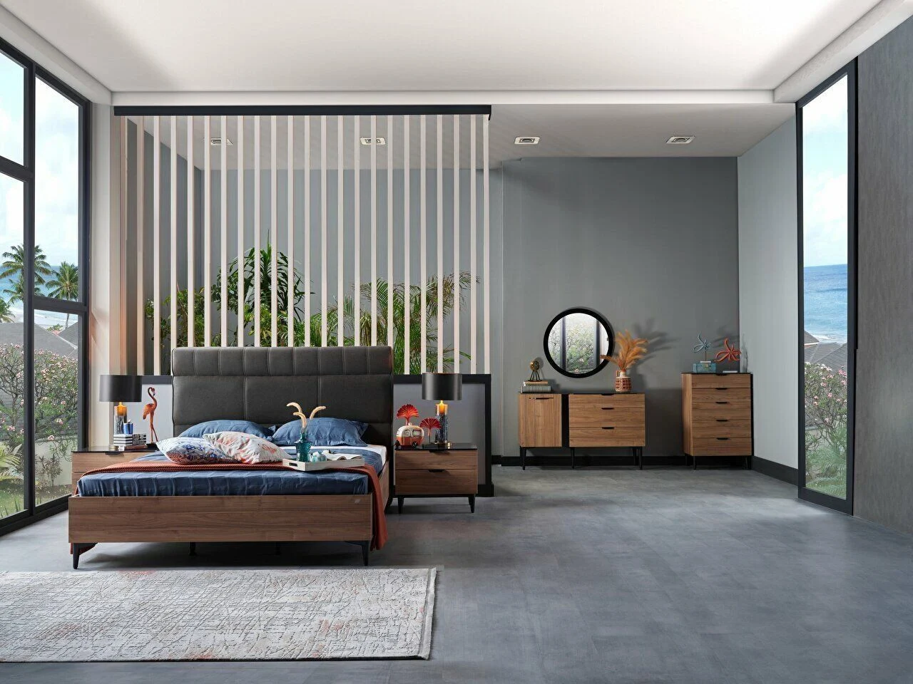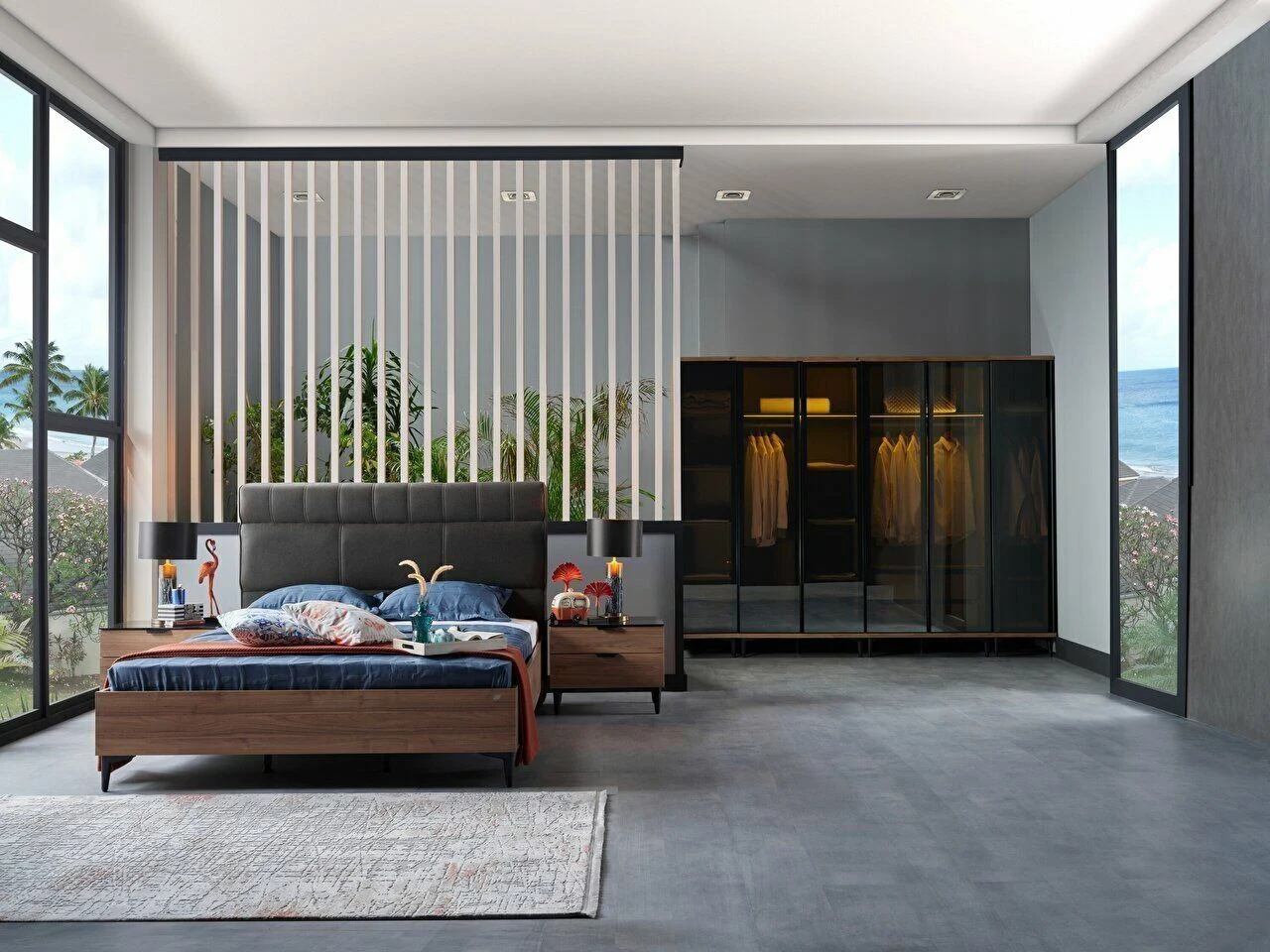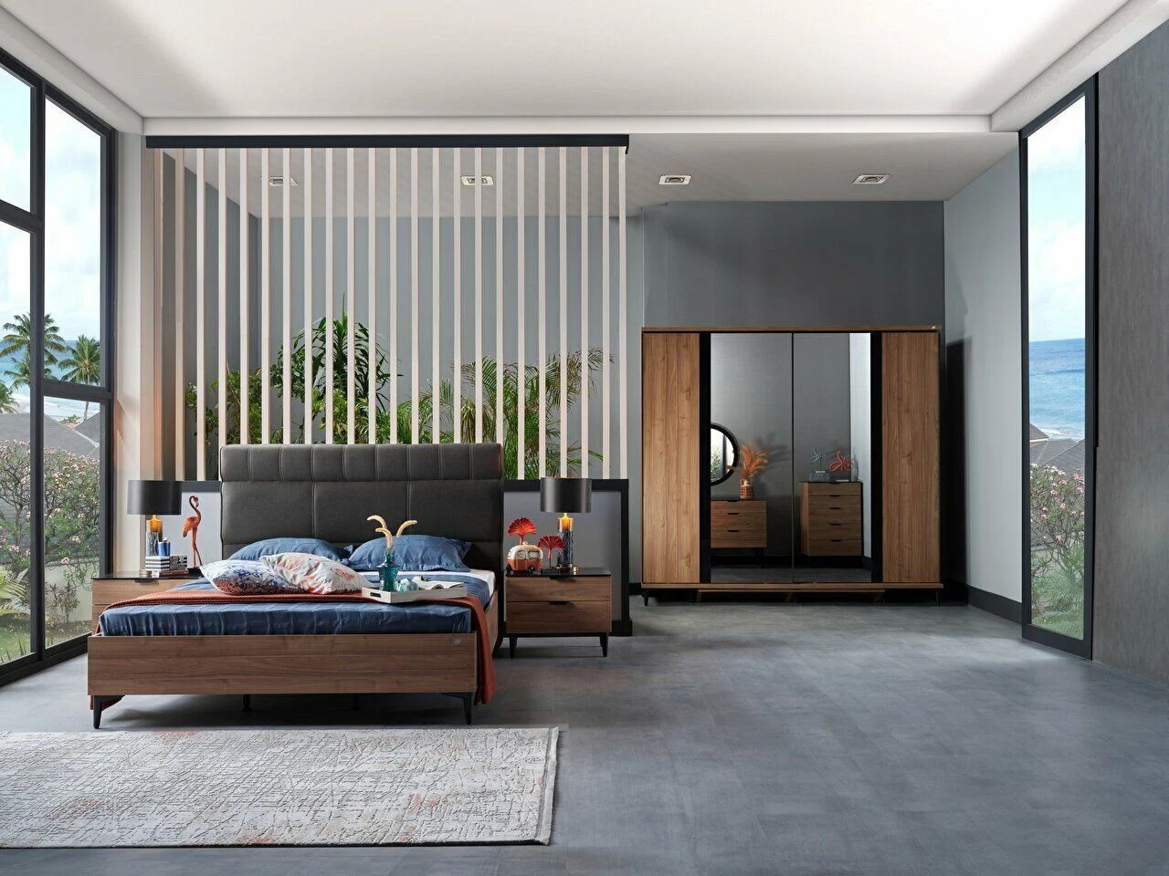 Contenu de l’équipe : Contenu de l’ensemble recommandé : Il se compose de 1 armoire à portes coulissantes + 1 table de maquillage + 1 miroir de maquillage + 1 tête de lit (150/160 cm) + 2 tables de nuit. Lorsque le contenu du kit change, le prix total peut varier.