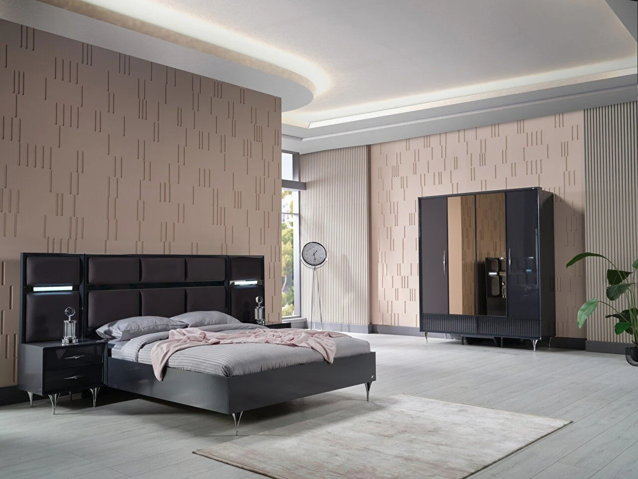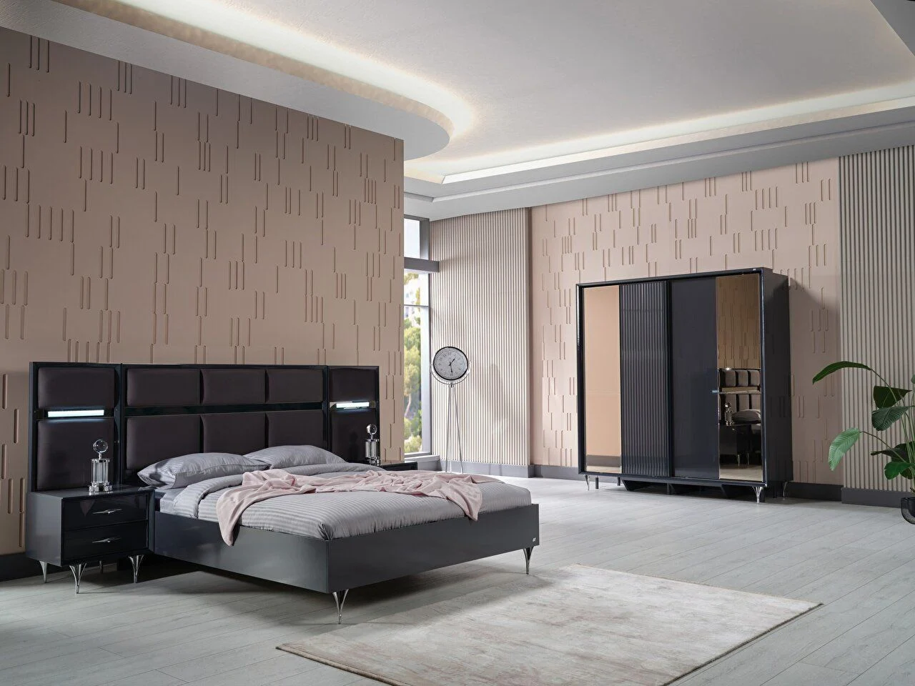 Design noble et riche : Viola représente une esthétique qui se distingue par la noblesse des couleurs sombres. L’ensemble de chambre à coucher comprend les designs les plus populaires du style moderne et ajoute une touche sophistiquée à votre maison.