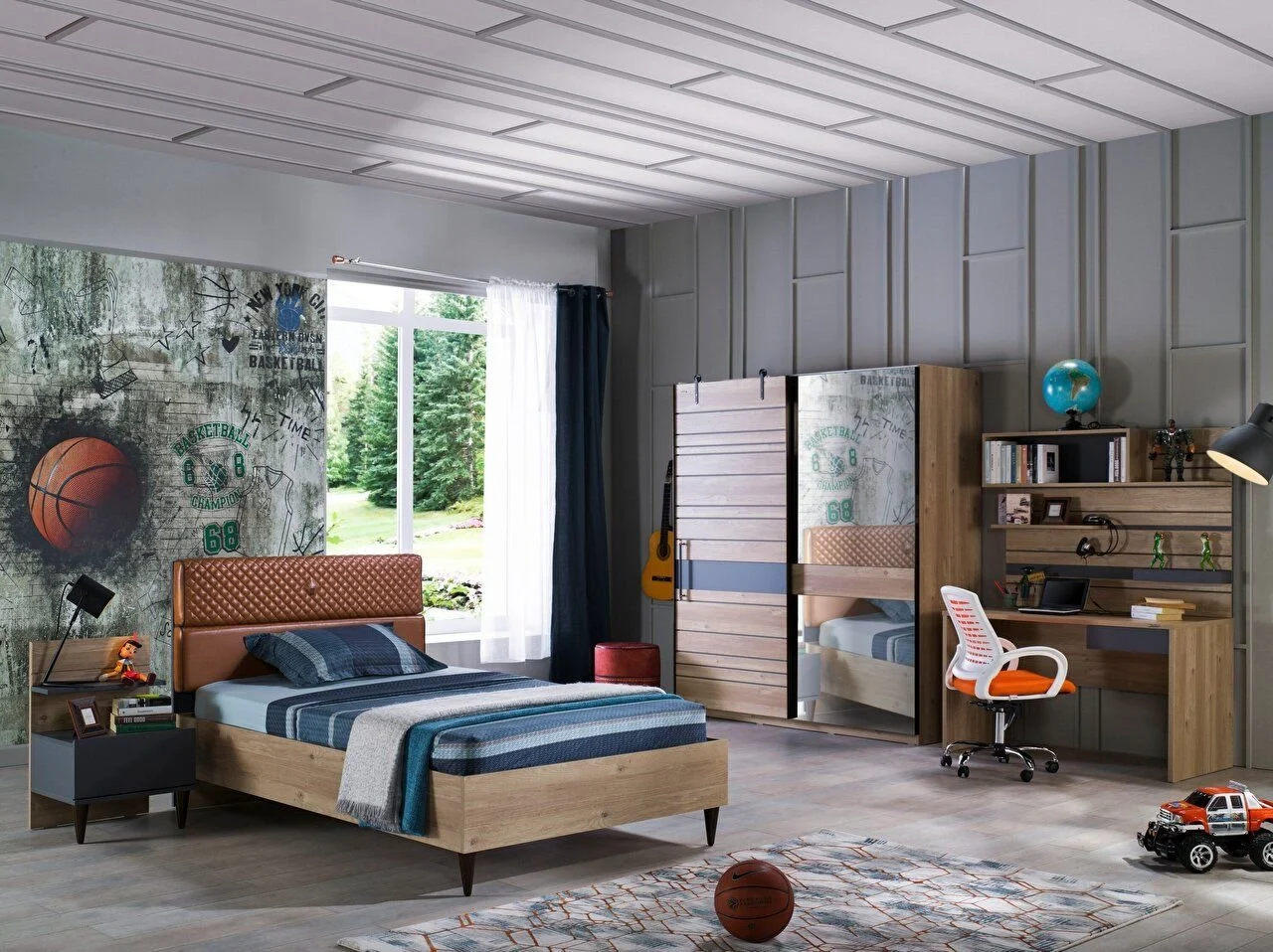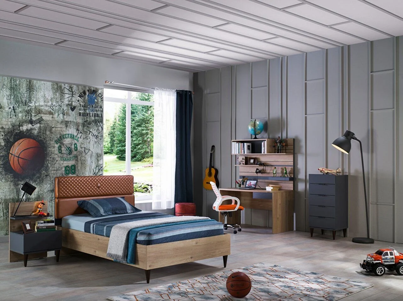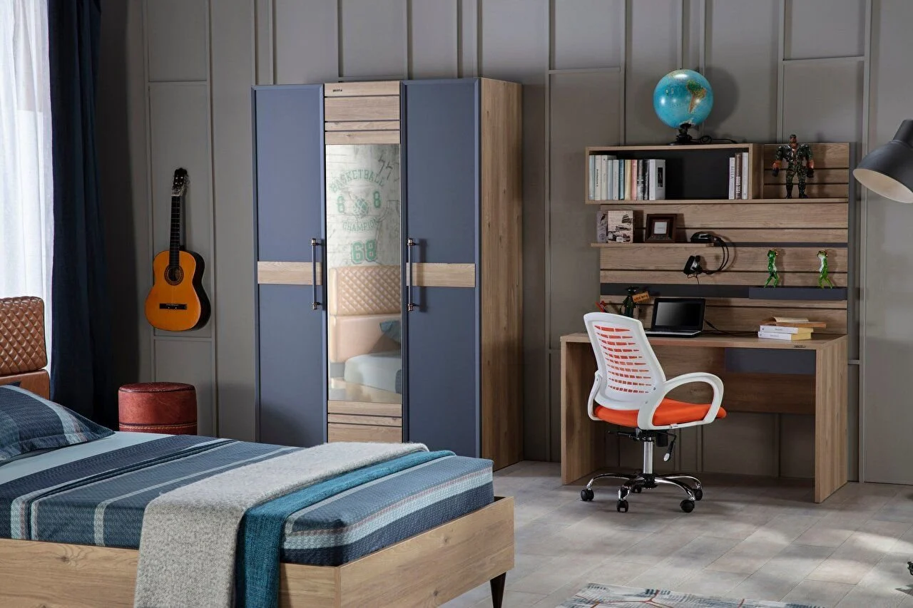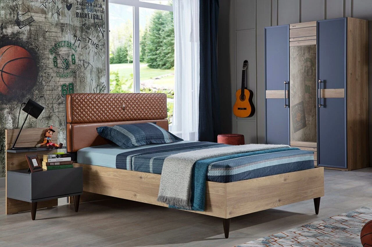L’ensemble de chambre Lauren Youth se distingue par sa sélection de couleurs, son design et la qualité de ses matériaux, ajoutant de l’élégance à vos espaces de vie. L’harmonie des couleurs chêne et anthracite, associée aux détails de la poignée et du matelassage, enrichit visuellement l’ensemble. Voici les points forts de l’ensemble de chambre Lauren Teen :