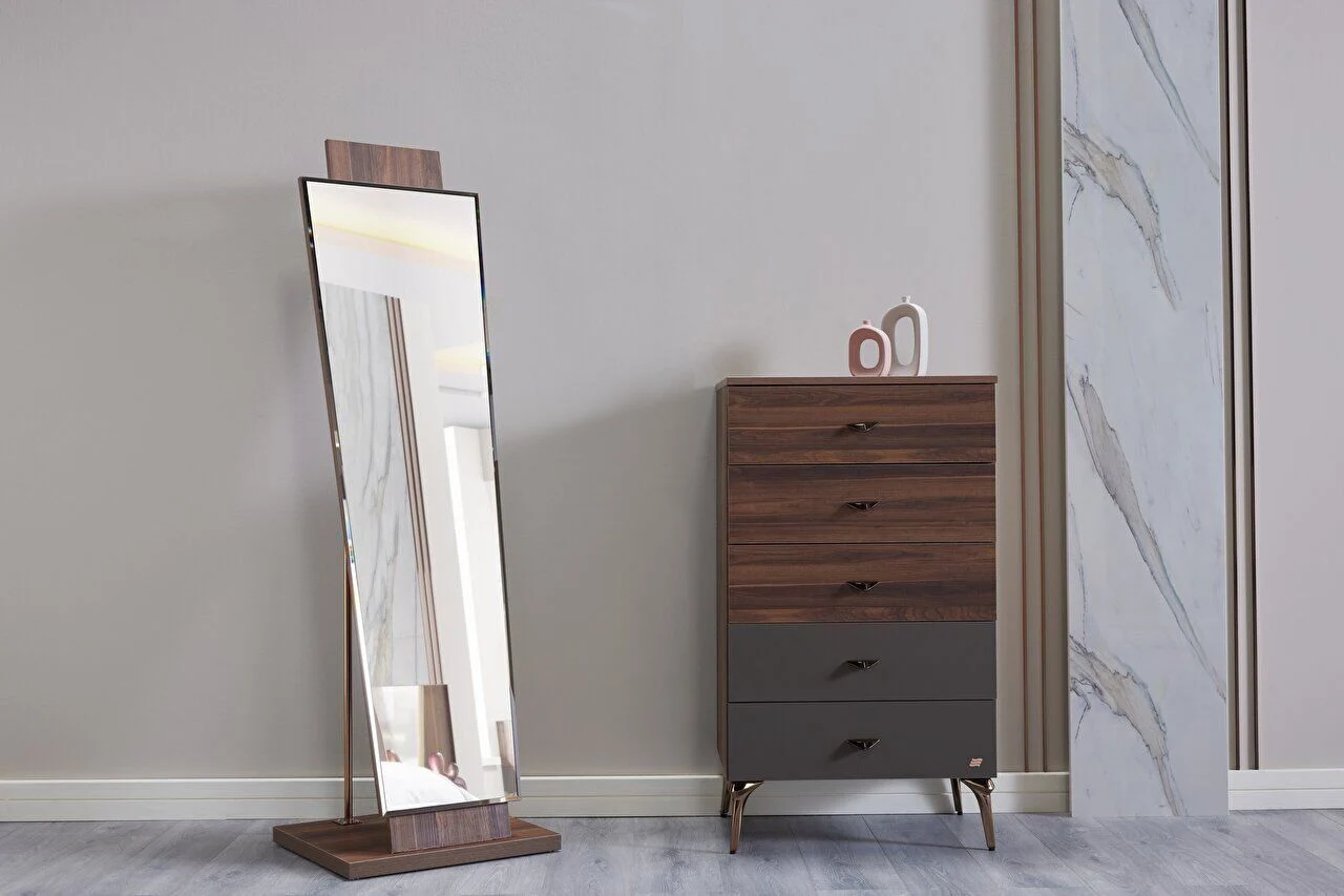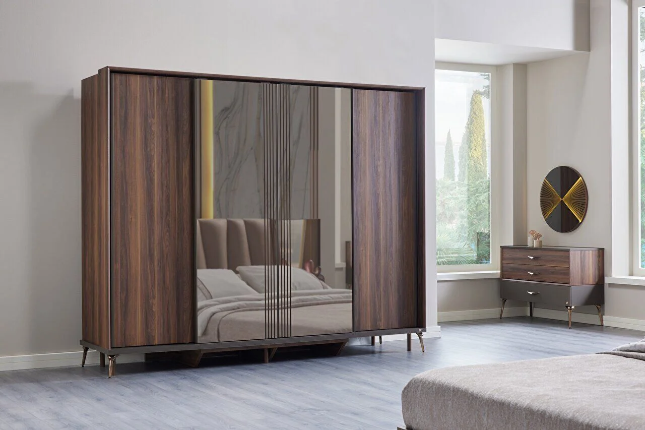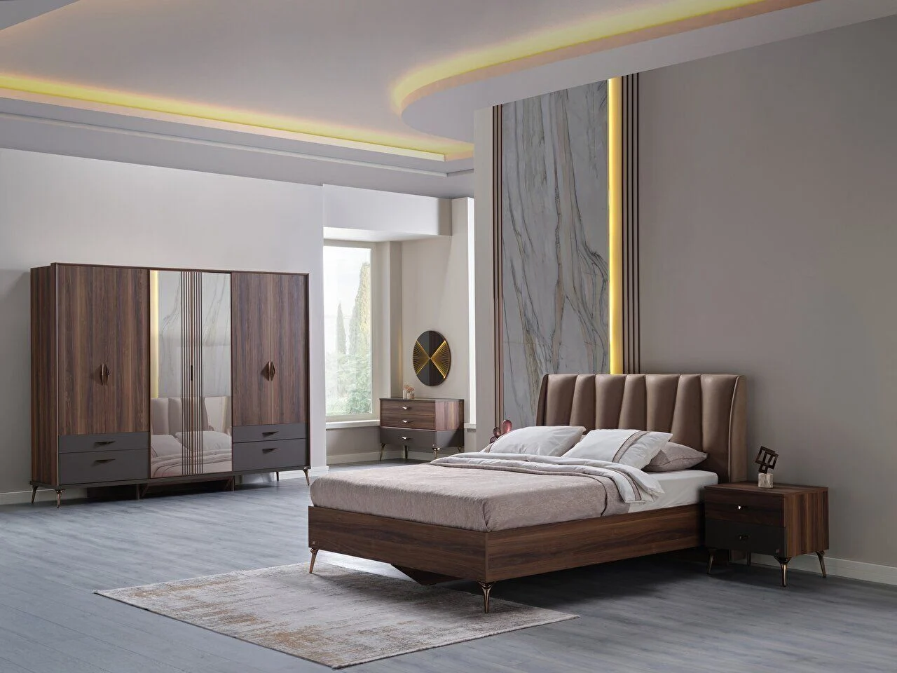 Armoire (4 Portes) + Table de Maquillage + Miroir de Maquillage + Tête de Lit (150/160 cm) + 2 Tables de Chevet