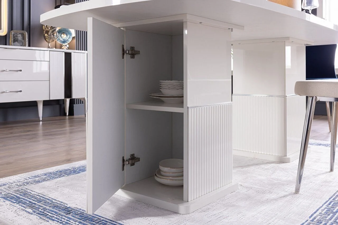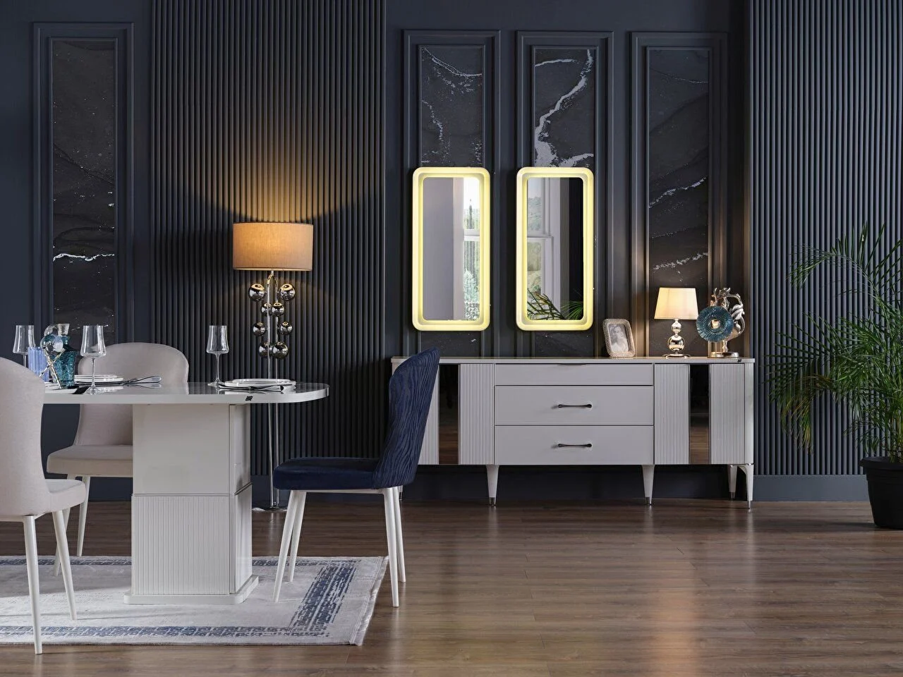 L’ensemble de salle à manger Arena est un ensemble de salle à manger connu pour ses lignes modernes et son design confortable. Les détails en bois et les techniques de revêtement spéciales ajoutent de l’élégance au produit. L’ensemble de salle à manger Arena, l’une des pièces les plus populaires du style moderne avant-gardiste, transforme votre maison en un environnement spacieux grâce à sa couleur à prédominance blanche.