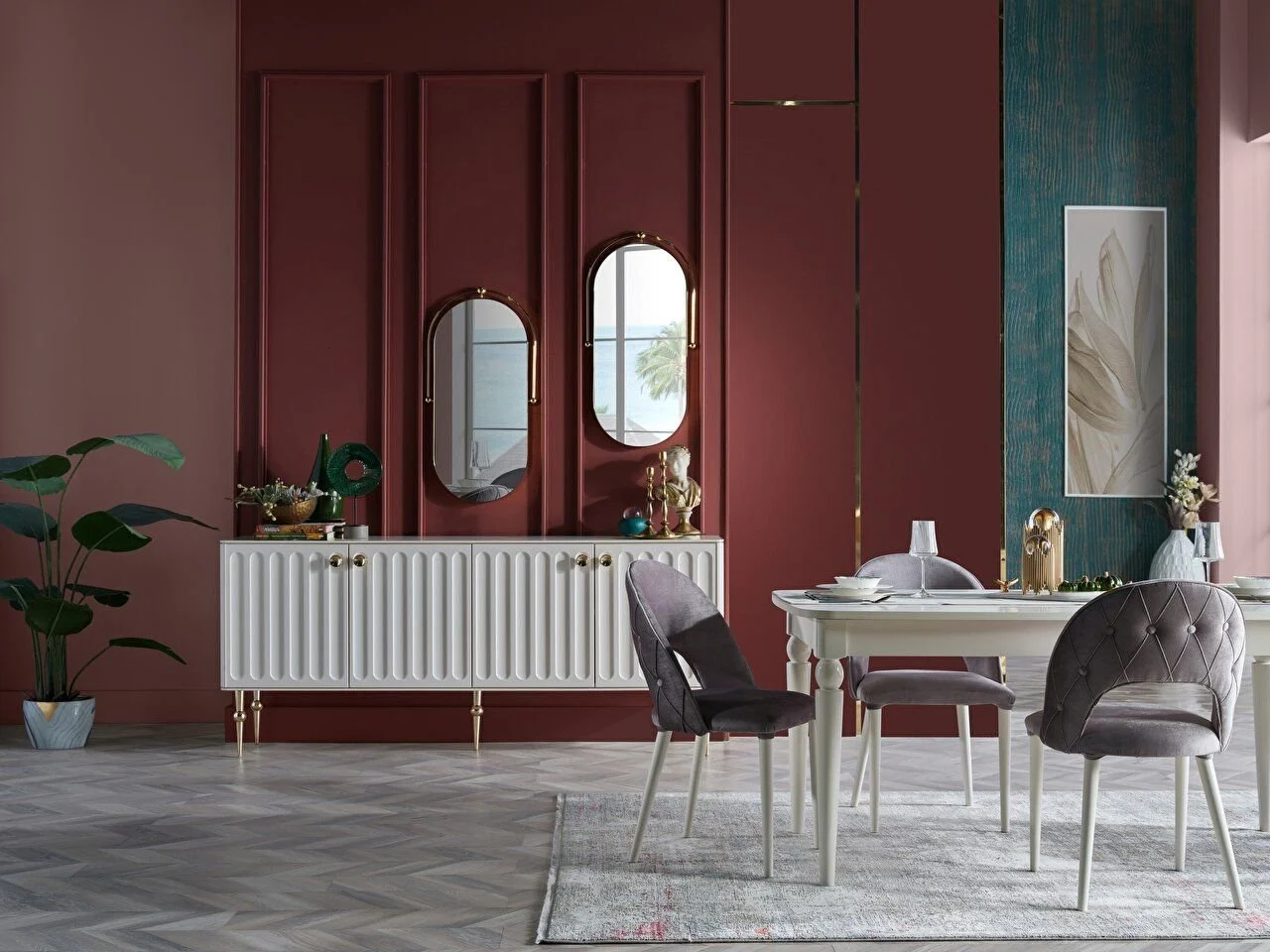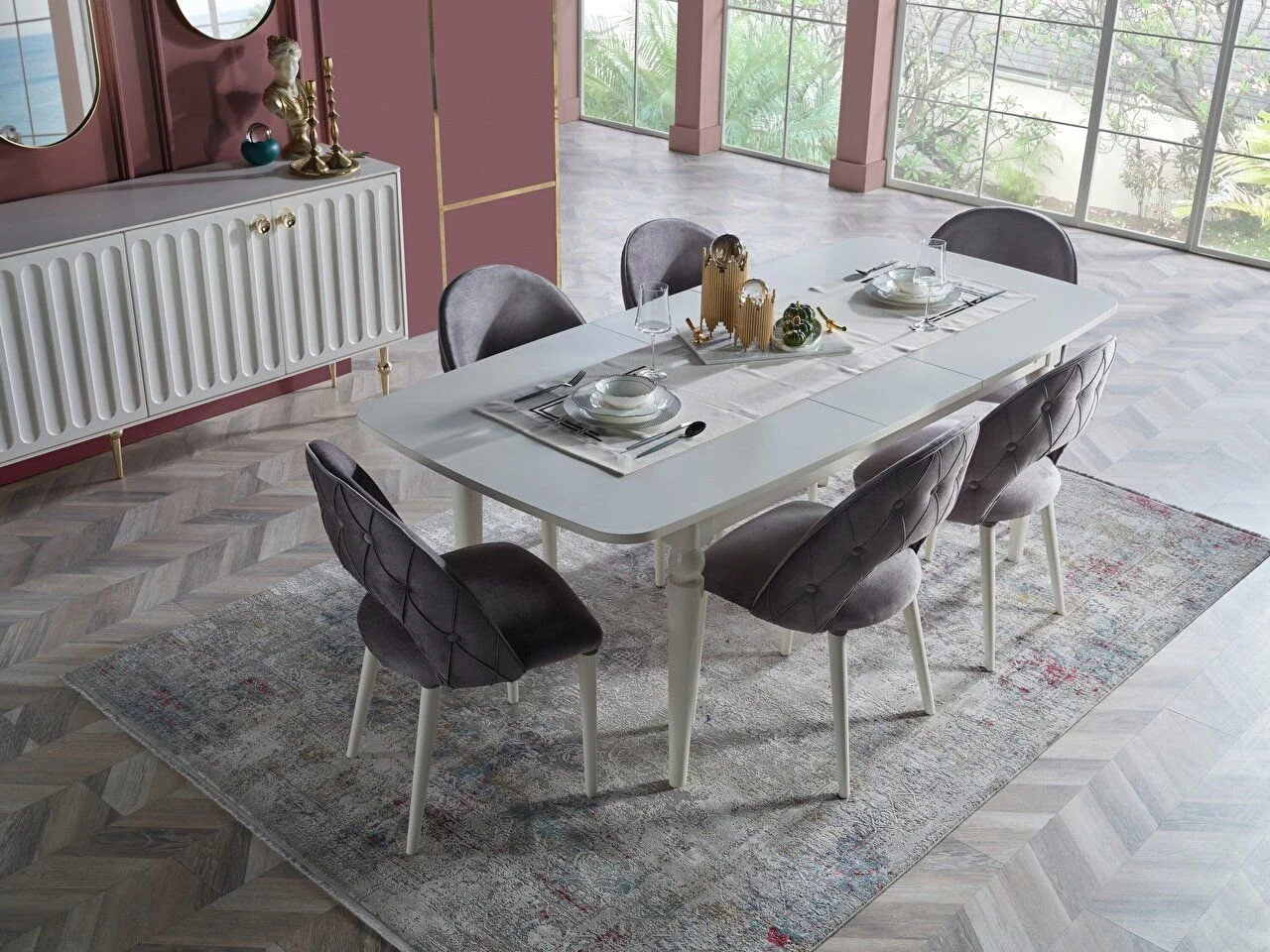 L’ensemble de salle à manger, qui accompagne des moments agréables et des conversations douces en dehors des heures de repas, revêt une grande importance professionnelle et esthétique. De la console au miroir console, des chaises au pouf, chaque pièce de l’ensemble de salle à manger est réalisée avec soin et ajoute de l’esprit aux intérieurs grâce à son design moderne. L’ensemble de salle à manger, qui constitue une partie importante du processus de décoration, peut être préféré en harmonie avec des meubles tels que des ensembles de salon et des groupes de sièges, ou il peut être préféré dans son propre design. Avec son design simple, sa couleur grise et ses détails intéressants, l’ensemble de salle à manger ajoute une atmosphère différente à vos salles à manger. Cet ensemble de salle à manger, qui est l’un des ensembles les plus appréciés du catalogue de modèles de salle à manger, met en valeur la décoration par son élégance.