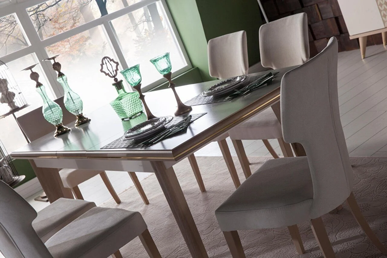 L’ensemble de salle à manger Elizya vise à faciliter votre vie quotidienne grâce à son design fonctionnel, tout en réunissant votre maison avec le confort et l’élégance de la vie moderne. La qualité d’Istikbal