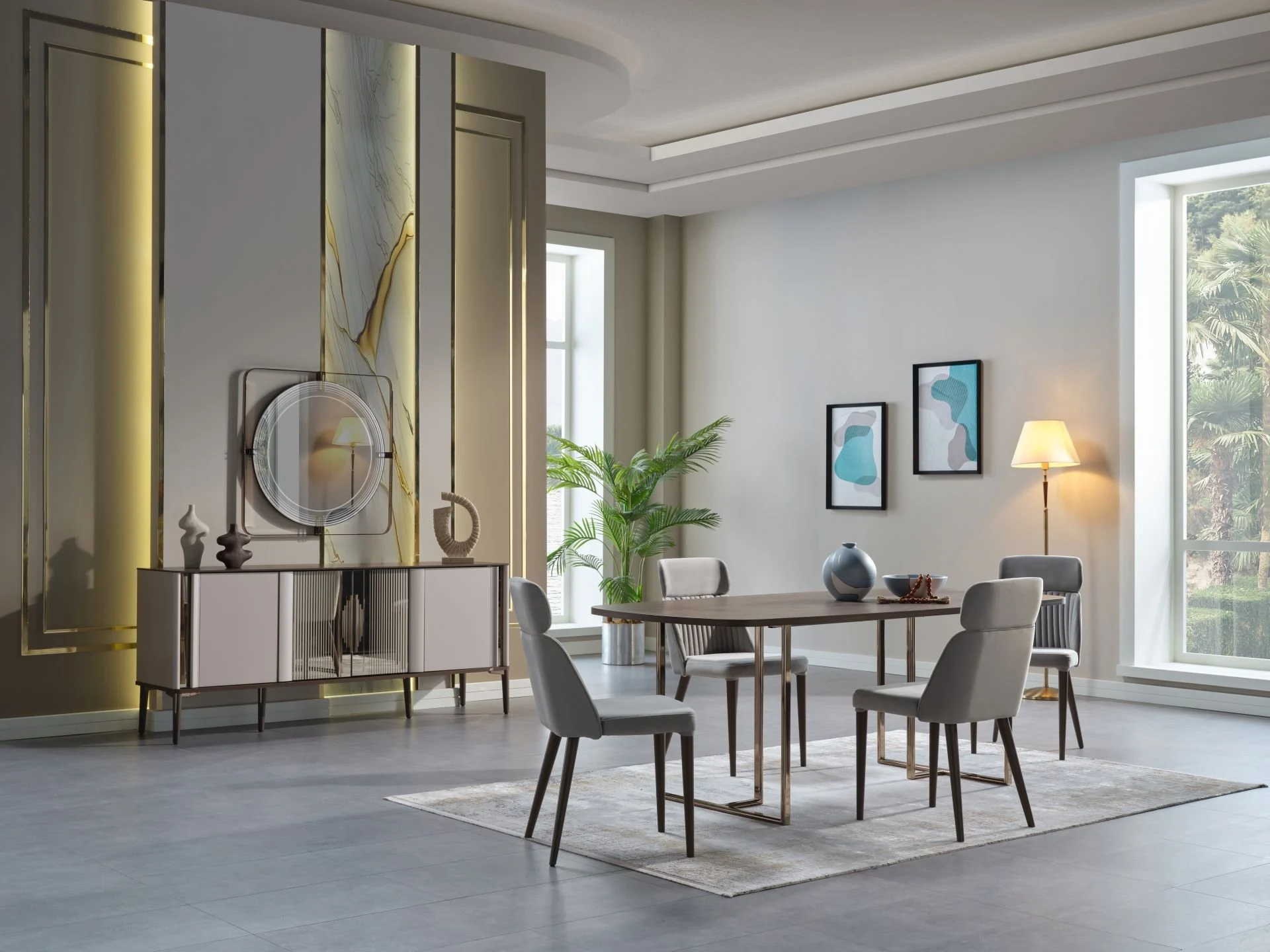 Contenu de l’équipe : Contenu de l’ensemble recommandé : se compose de 1 console + 1 table à manger fixe + 4 chaises 8213. Lorsque le contenu du kit change, le prix total peut varier.