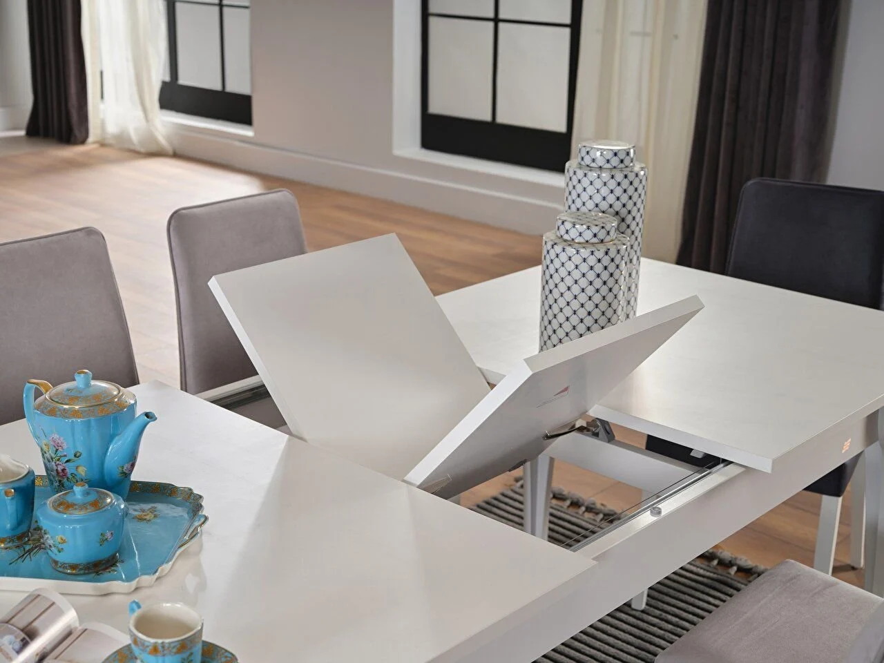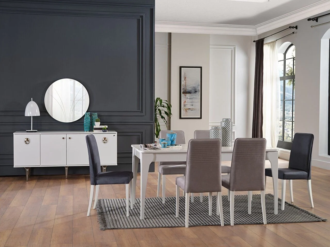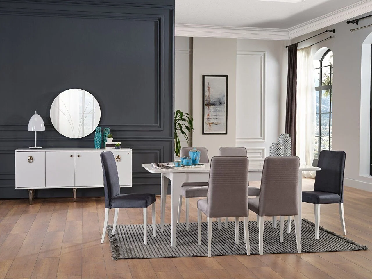 L’ensemble de salle à manger Roxy attire l’attention par ses caractéristiques fonctionnelles ainsi que par son design élégant. Des applications de poignées spécifiques à la série et des pieds hauts depuis le sol enrichissent visuellement l’ensemble. Le système de ralentissement sur les capots de l’unité évite les collisions. L’ensemble de salle à manger Roxy est une collection de meubles qui se distingue par son design simple et ses couleurs douces. Attirant l’attention par son style moderne et élégant, Roxy transforme votre maison en une atmosphère dynamique et vivante, reflétant un style de vie jeune et moderne. En combinant fonctionnalité et éléments esthétiques, il offre aux propriétaires à la fois une utilisation pratique et une élégance visuelle.