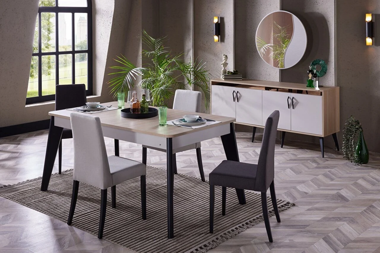 Si ses grands espaces de rangement mettent en valeur la compréhension de Serez de la fonctionnalité, il offre une élégance esthétique avec ses lignes élégantes et ses détails raffinés. Cet ensemble peut facilement s’adapter à différents styles de décoration grâce à son design simple et élégant. Il offre aux propriétaires la liberté d’ajouter de l’originalité, leur permettant ainsi de décorer au mieux leurs espaces de vie. L’ensemble de salle à manger Serez offre un équilibre parfait en termes d’esthétique visuelle et d’utilisation pratique.