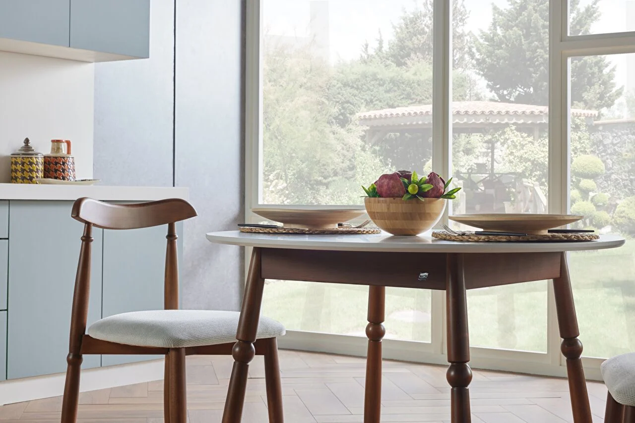Apportez un style campagnard à votre cuisine avec la table de cuisine ronde Merlin . L’ensemble de table de cuisine Merlin vous accompagne pour des repas chaleureux et conviviaux.