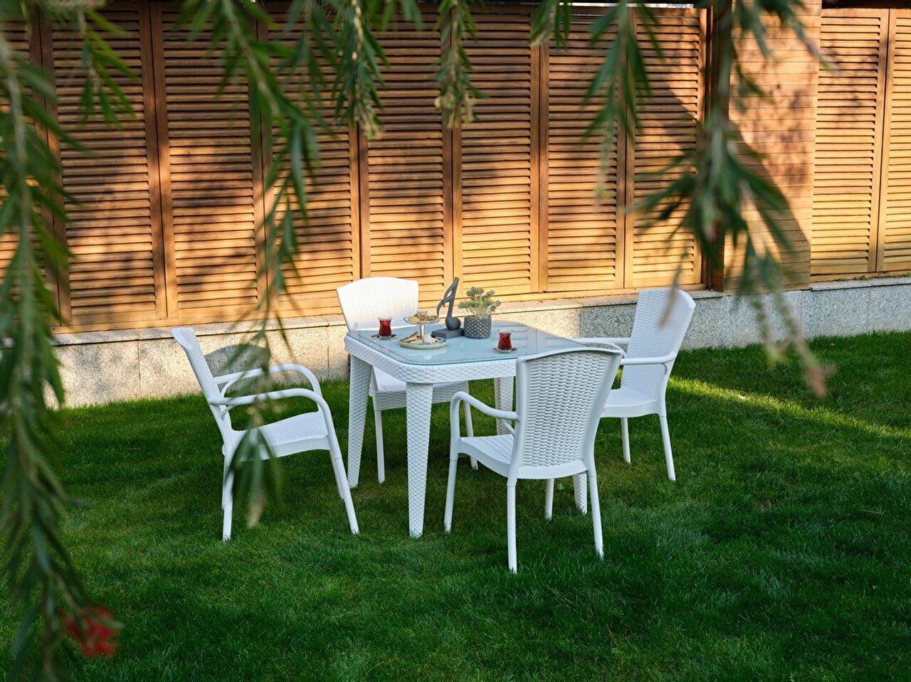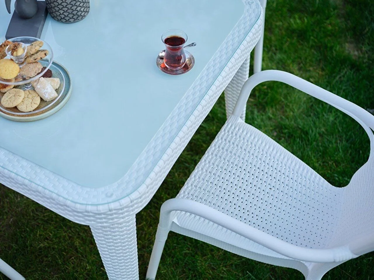 Détails du produit : Il offre un aspect clair et moderne avec sa couleur blanche. Fabriqué à partir de matériaux durables. La grande surface de table vous permet de placer confortablement vos repas ou boissons. La couleur blanche crée une atmosphère spacieuse. Il favorise une assise confortable grâce à son design ergonomique. Fabriqué avec des matériaux résistants aux intempéries.