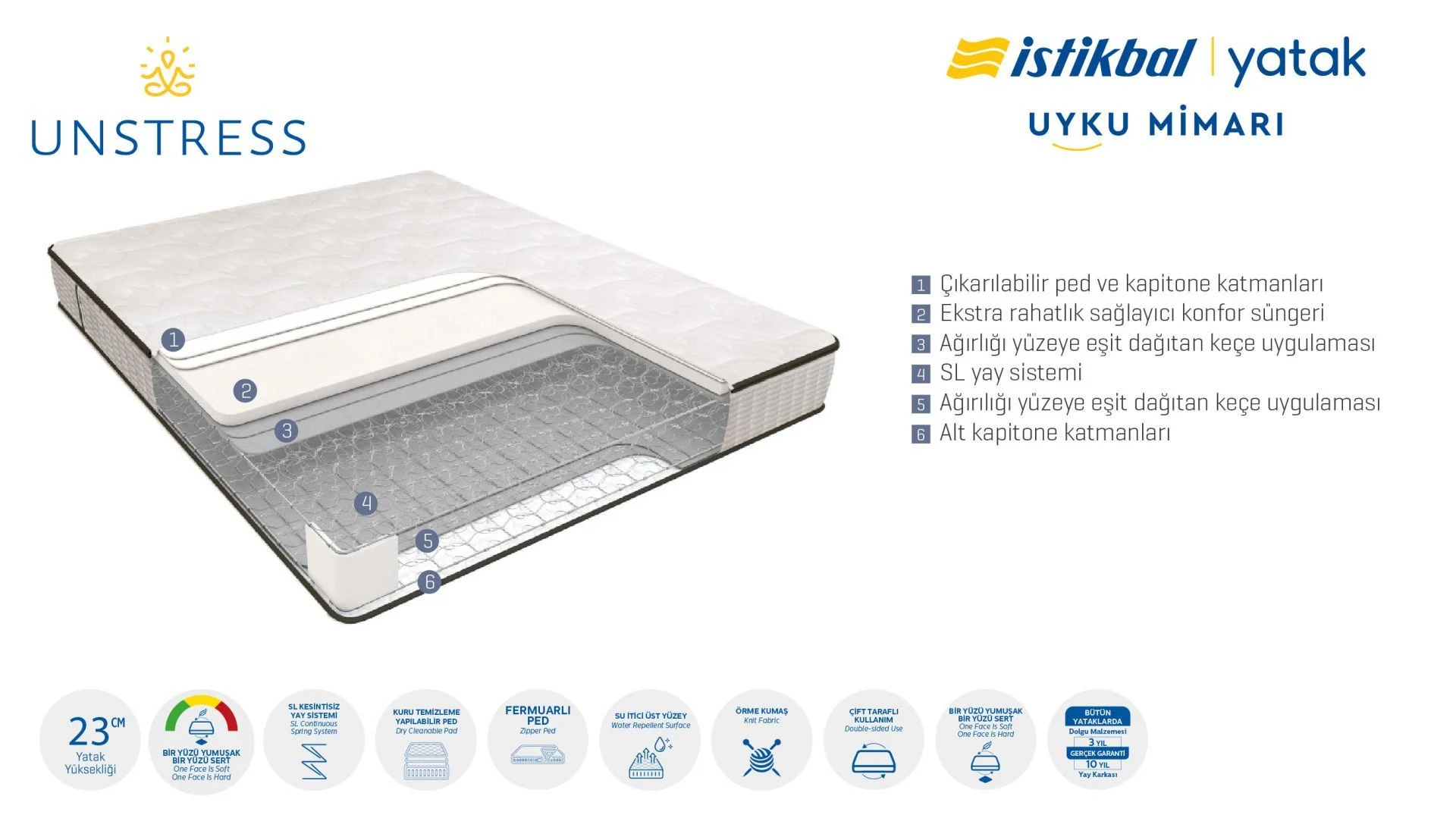 Système à ressorts continus SL Le système à ressorts le plus qualifié que l’on puisse trouver uniquement dans les matelas Istikbal, développé pour ceux qui souhaitent un matelas entièrement orthopédique et dur.